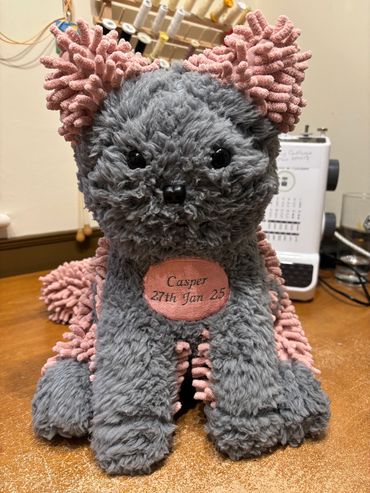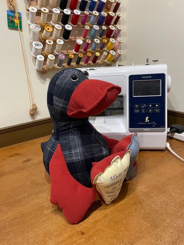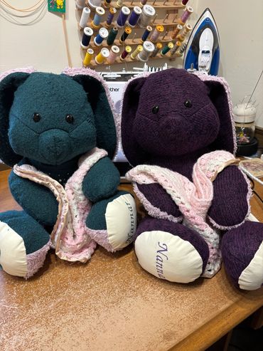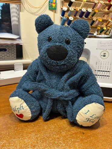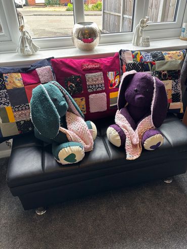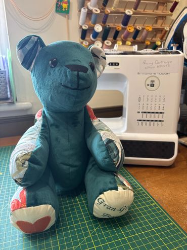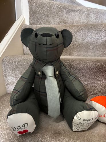 I make memory bears, quilts, cushions and other animals from clothing of someone you love. As well as a way to remember someone who has sadly left us I also make mementos from baby clothing which has been grown out of, school uniforms, work uniforms etc.